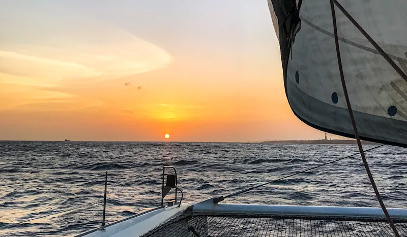 Esta viagem ao pôr do sol de 2 horas e meia em seu belo catamarã sai todas as sextas-feiras às 17h30 de Mood Beach (Mambo Blvrd). A bordo, você será servido com bebidas, petiscos e boa música enquanto assiste confortavelmente ao pôr do sol em mais um belo dia. Reserve seu passeio aqui ou via Ph/WhatsApp: (+5999) 690-3717.